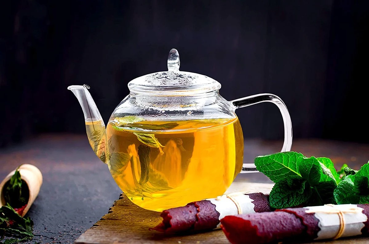 Feelino “Special Edition” luxe handgemaakte theekan met 1300 ml inhoud (volledig tot de rand), roestvrijstalen theezeef en glazen deksel