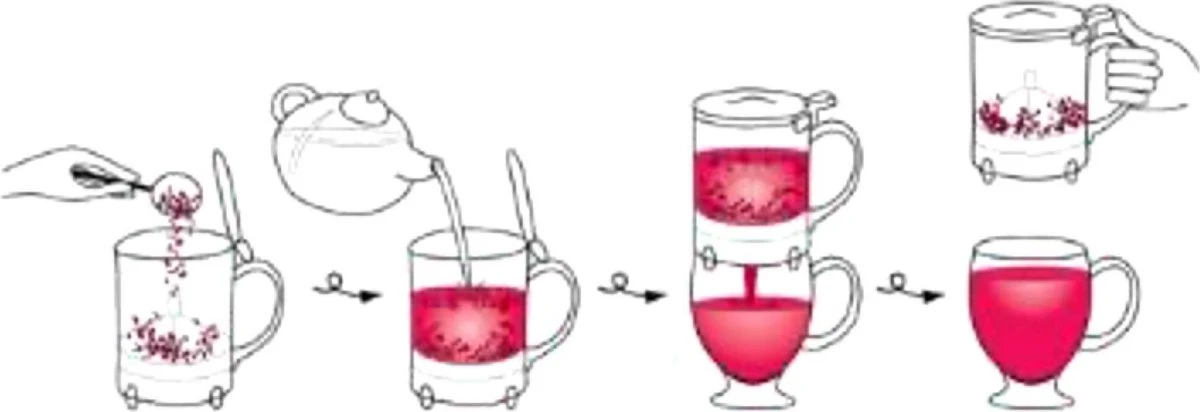 Je voegt de losse thee toe aan de Tea Maker, vervolgens voeg je heet water eraan toe. Even wachten en zet de Tea maker op je glas.